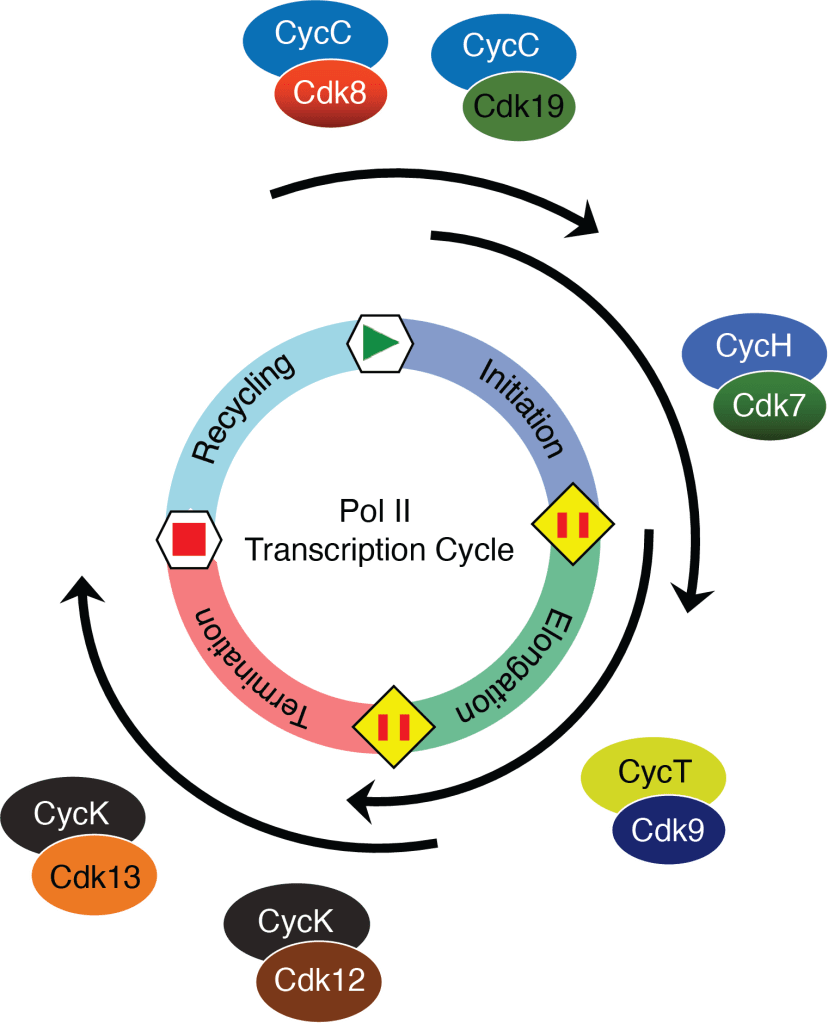 Cyclin-dependent kinases (CDKs) govern the Pol II transcription cycle